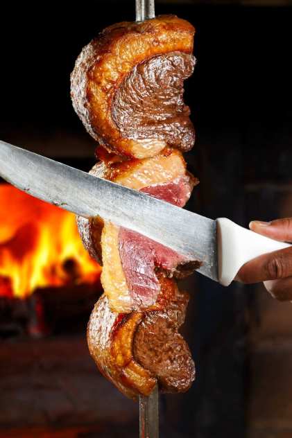 Brazil de la espada a tu mesa, hace un homenaje a una de las mas deliciosas costumbres criollas el Rodizio, una variedad de carnes servidas en serie, montadas en espadas recién salidas del fuego, que son fileteadas una a una directamente en el plato del comensal, todo esto enmarcado por una extensa barra de ensaladas que harán disfrutar aún más el momento.